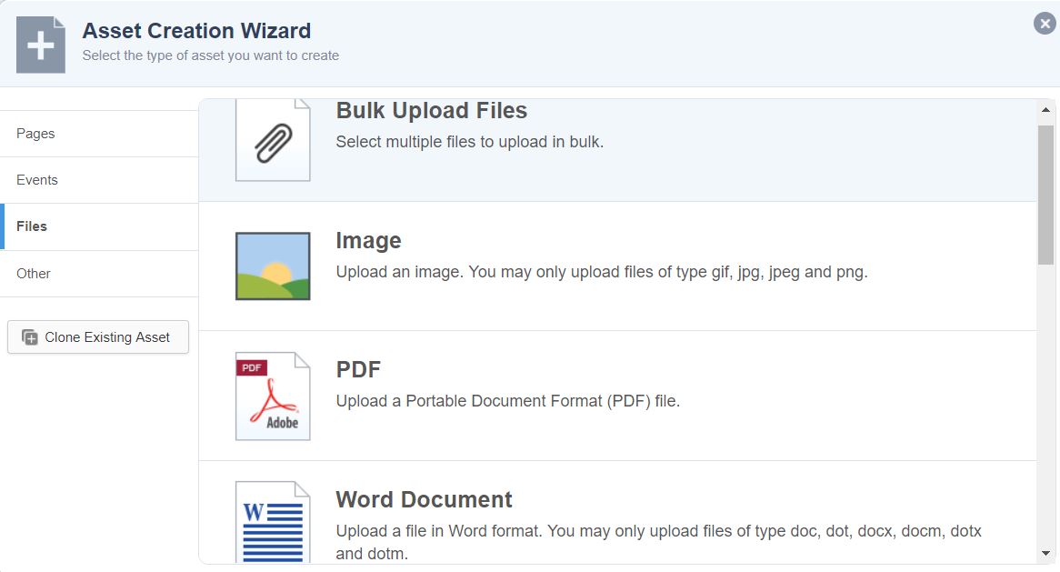 - In the panel that opens, from the list on the left, select Files